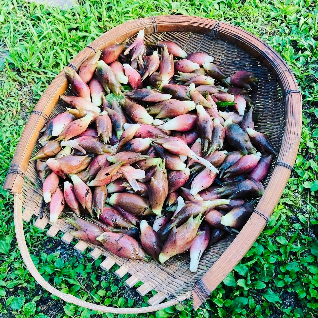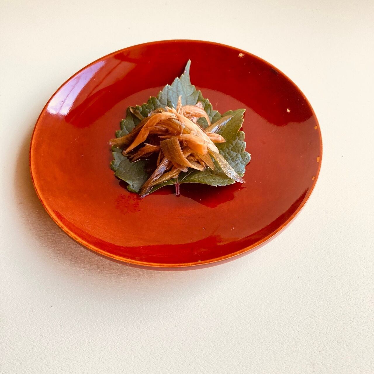 甲津原産のプリプリの茗荷を丁寧に摘み、醤油漬けにしました。
